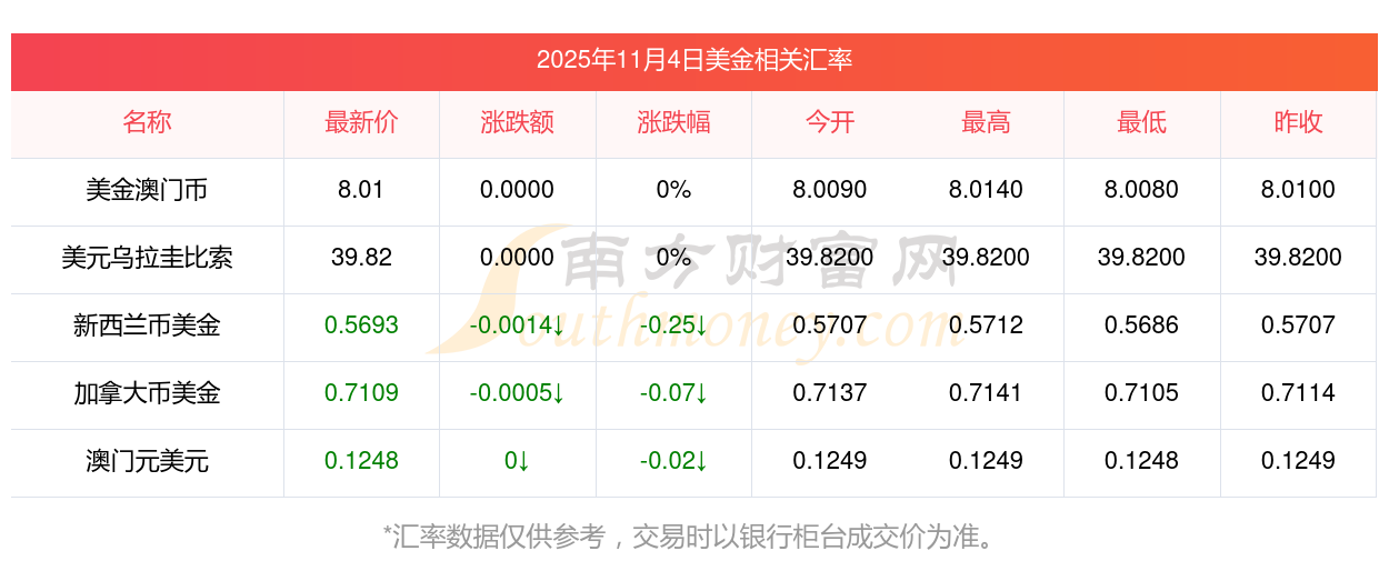 2025年11月4日美金相關(guān)匯率查詢