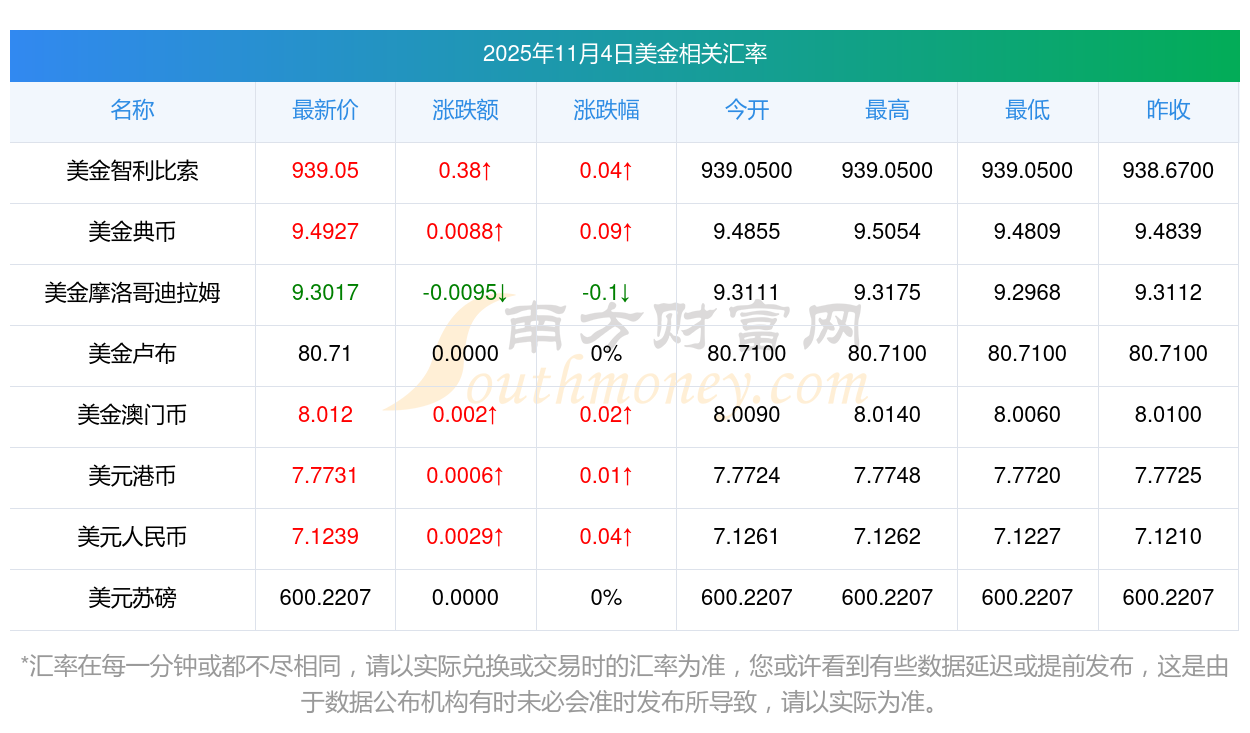 2025年11月4日美金相關(guān)匯率查詢(xún)