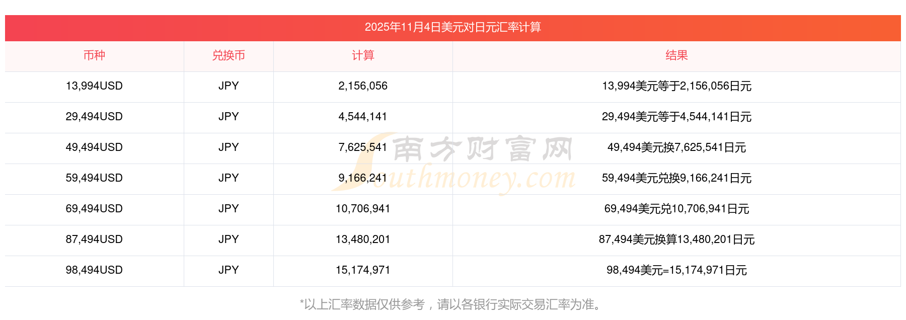 本站提供的匯率僅供參考,最終以各銀行實(shí)際交易匯率為準(zhǔn)。對使用當(dāng)前匯率所導(dǎo)致的結(jié)果概不承擔(dān)任何責(zé)任。