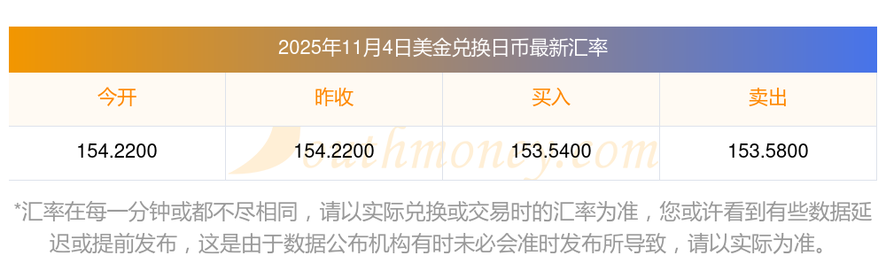 今天匯率行情:1美元兌日幣匯率多少(2025年11月4日)