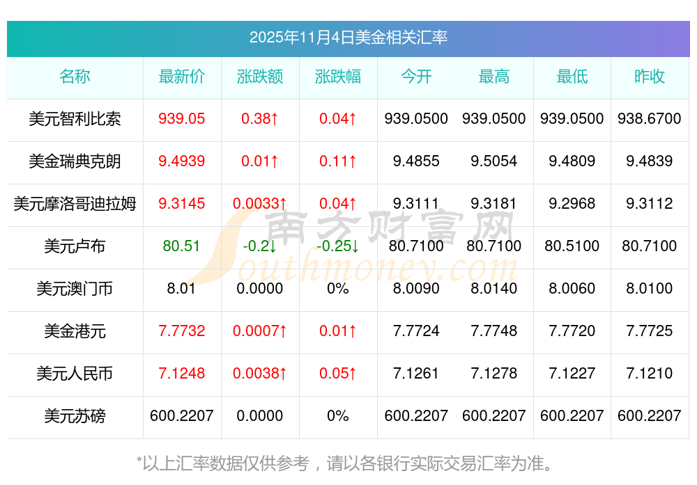 2025年11月4日美金相關(guān)匯率查詢