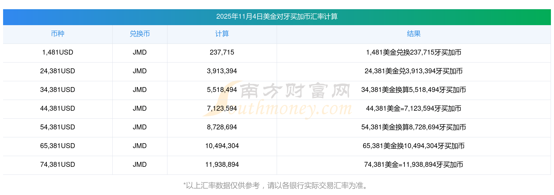 南方財富網(wǎng)為您提供美金對牙買加幣匯率最新價格詳情。