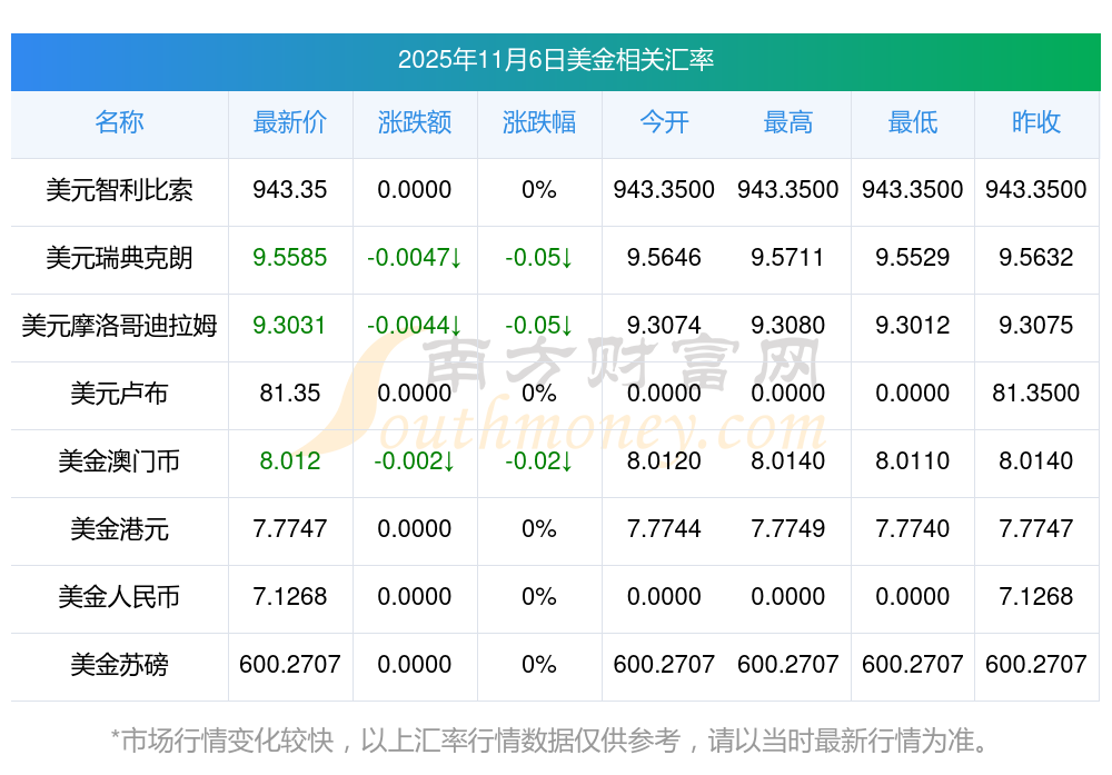根據(jù)2025年11月6日匯率計(jì)算,美金兌換剛幣匯率最新價(jià)2260.000000,今開價(jià)0.0000,昨收價(jià)2260.0000,最高價(jià)0.0000,最低價(jià)0.0000。