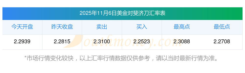 今日斐濟(jì)刀匯率調(diào)整:美元兌換斐濟(jì)幣匯率一覽表(11月6日)