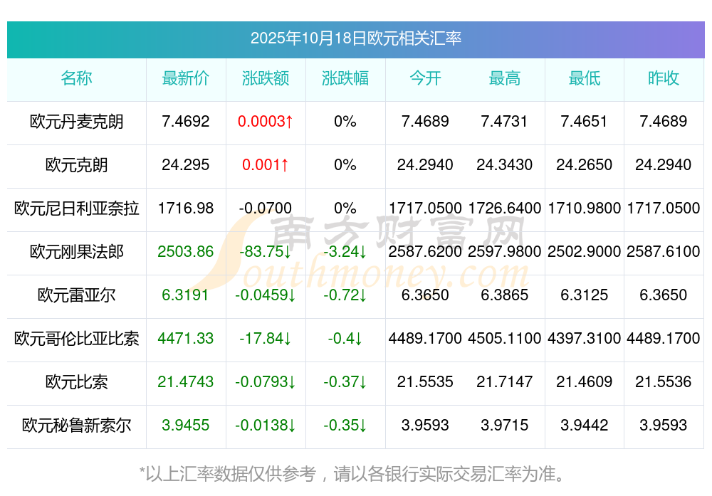 2025年10月18日最新消息,歐元兌換瑞典克朗最新匯率為11.001300,今開為11.0180,昨收為11.0179,最高為11.0875,最低為11.0002。