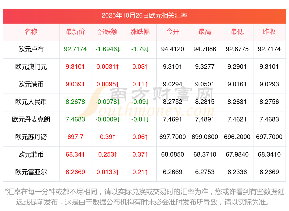 今日歐元匯率多少?換馬來西亞幣匯率又是多少? 2025/10/26