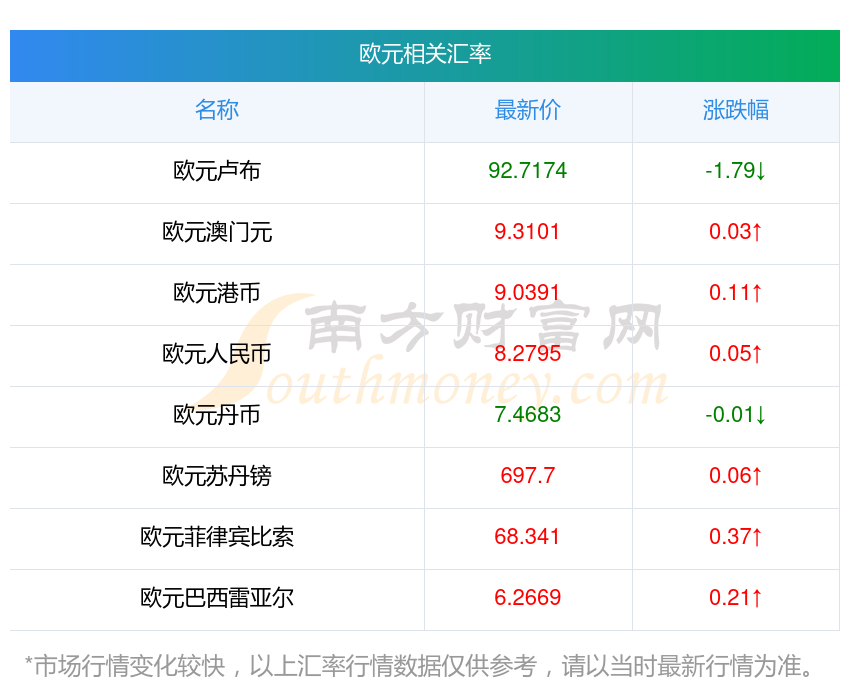 南方財富網(wǎng)為您提供歐元對人民幣匯率最新價格詳情。