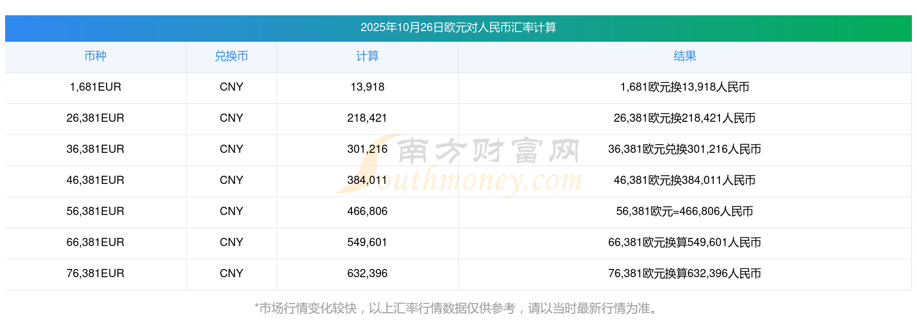 南方財富網(wǎng)為您提供歐元對人民幣匯率最新價格詳情。