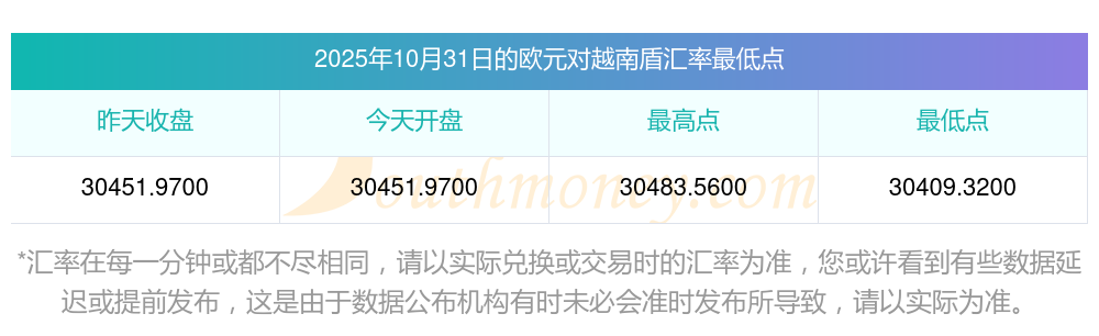 今天歐元買(mǎi)入價(jià)多少 100歐元兌越南盾匯率多少?(2025-10-31)