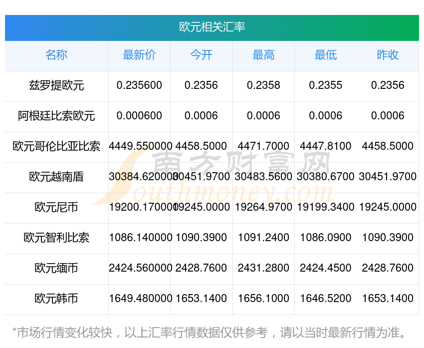 根據(jù)2025年10月31日匯率計算,EUR兌換NOK匯率最新價11.643100:今日開價11.6346,昨日收價11.6346,最高價11.6756,最低價11.6000。