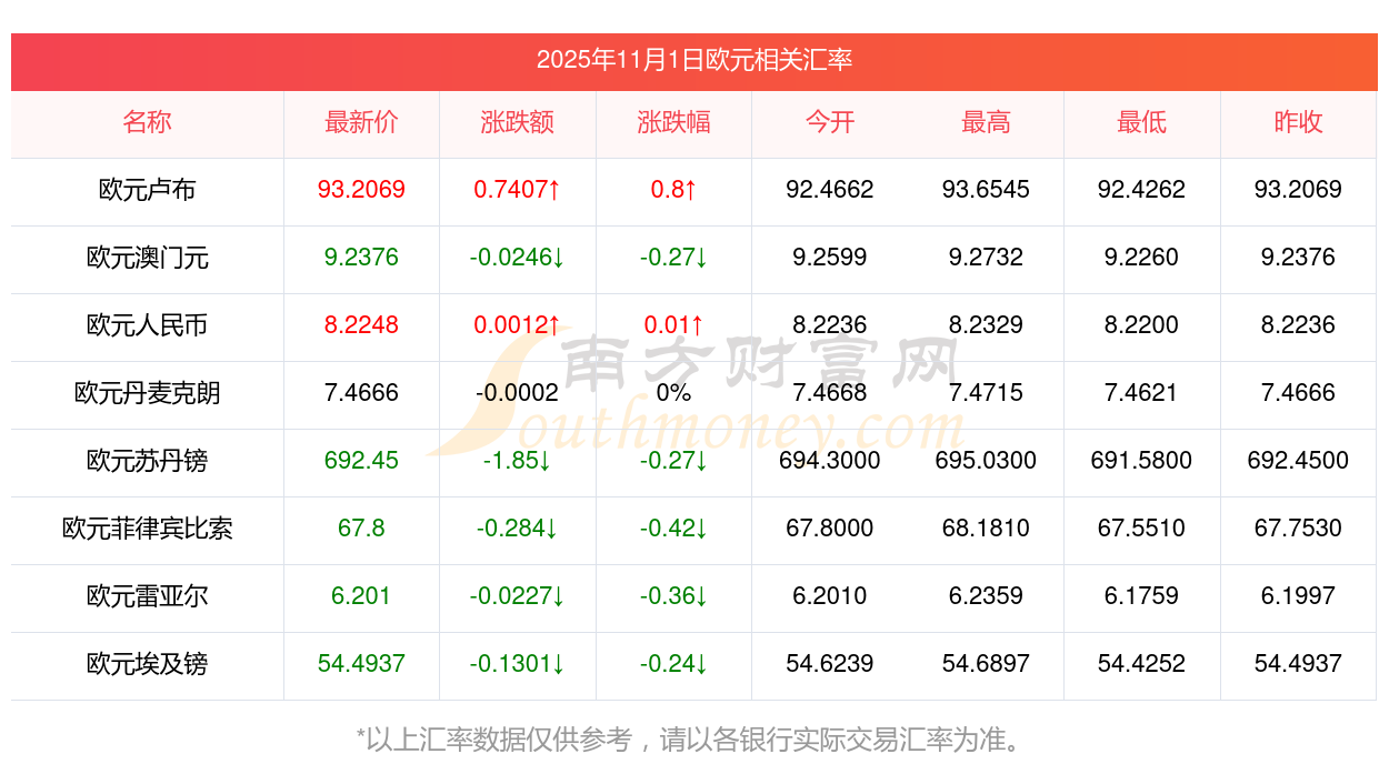 根據(jù)2025年11月1日匯率,歐元兌換秘魯新索爾匯率最新價3.883400,今開價3.9127,昨收價3.8834,最高價3.9174,最低價3.8553。