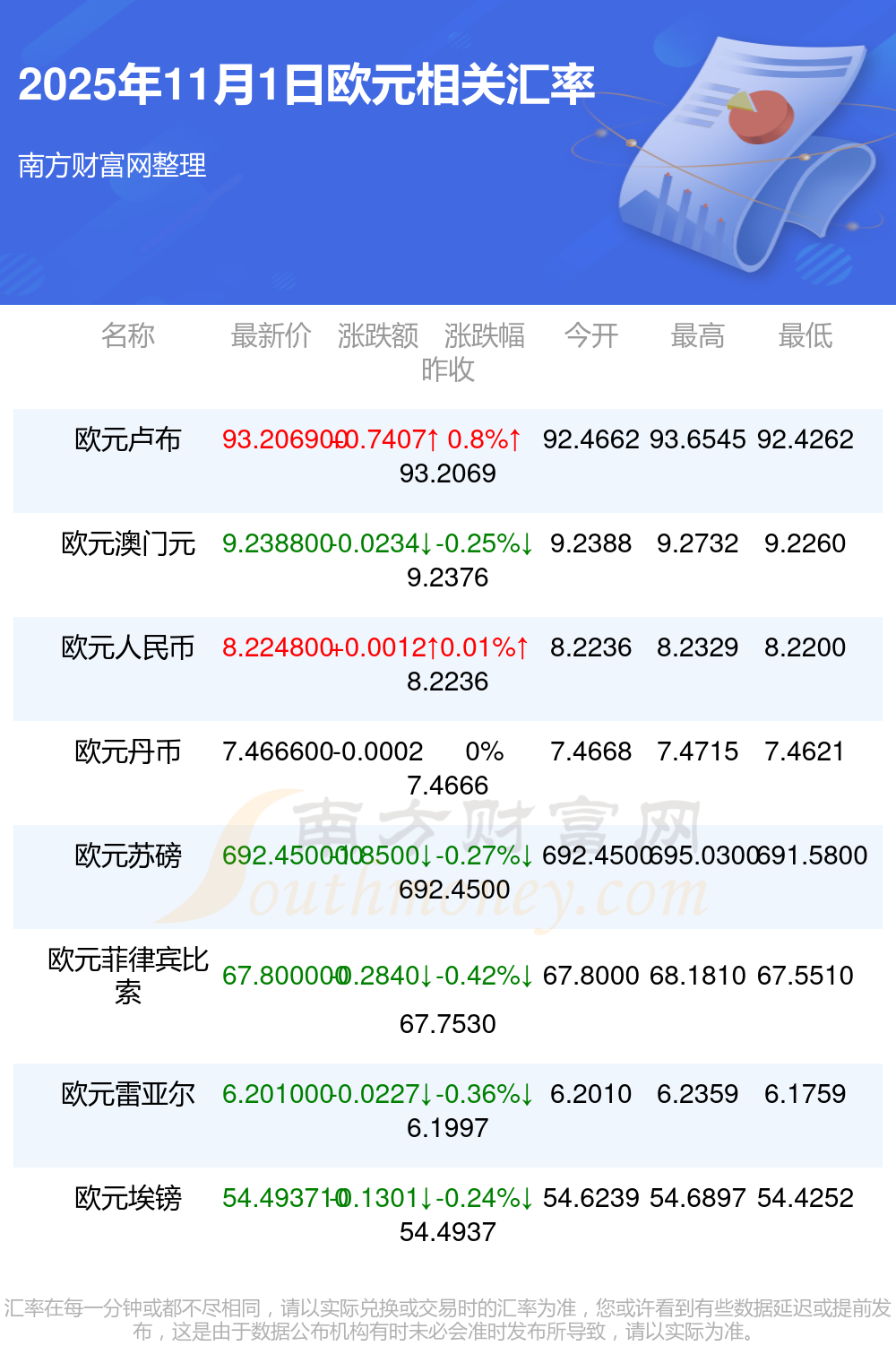 根據2025年11月1日匯率,歐元兌換哥倫比亞比索匯率最新4450.400000,今開4450.4000,昨收4452.8400,最高4471.7000,最低4435.5600。