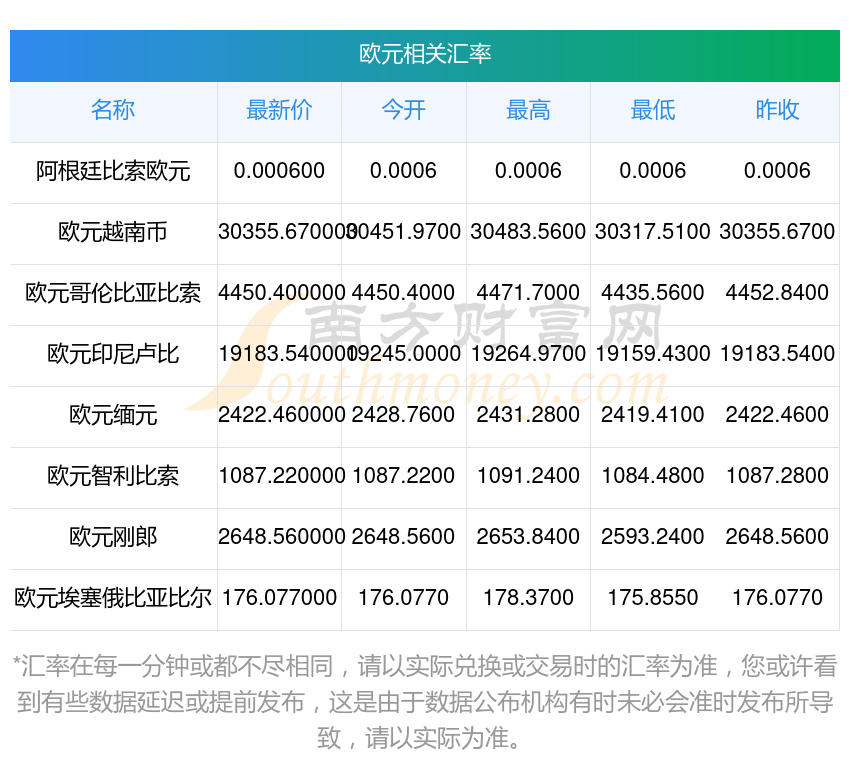 南方財富網(wǎng)為您提供歐元對人民幣匯率最新價格詳情。