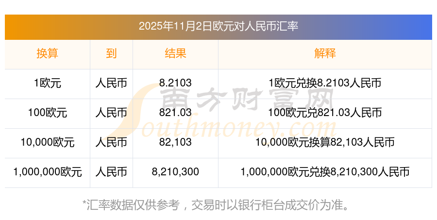 南方財富網(wǎng)為您提供歐元對人民幣匯率最新價格詳情。