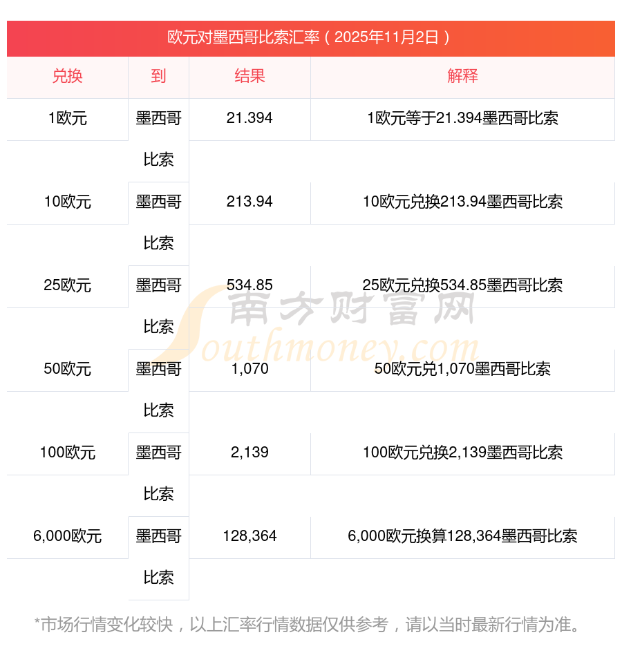 南方財(cái)富網(wǎng)為您提供歐元對(duì)墨西哥比索匯率最新價(jià)格詳情。
