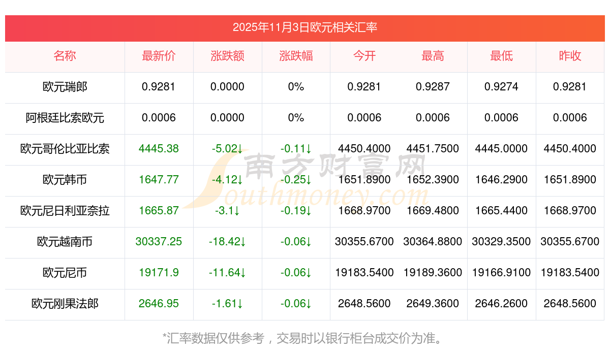 今天1歐元對哥倫比亞比索匯率是多少_新匯率行情(11月3日)