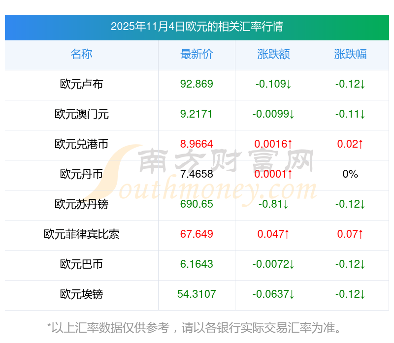 2025年11月4日歐元相關(guān)匯率查詢