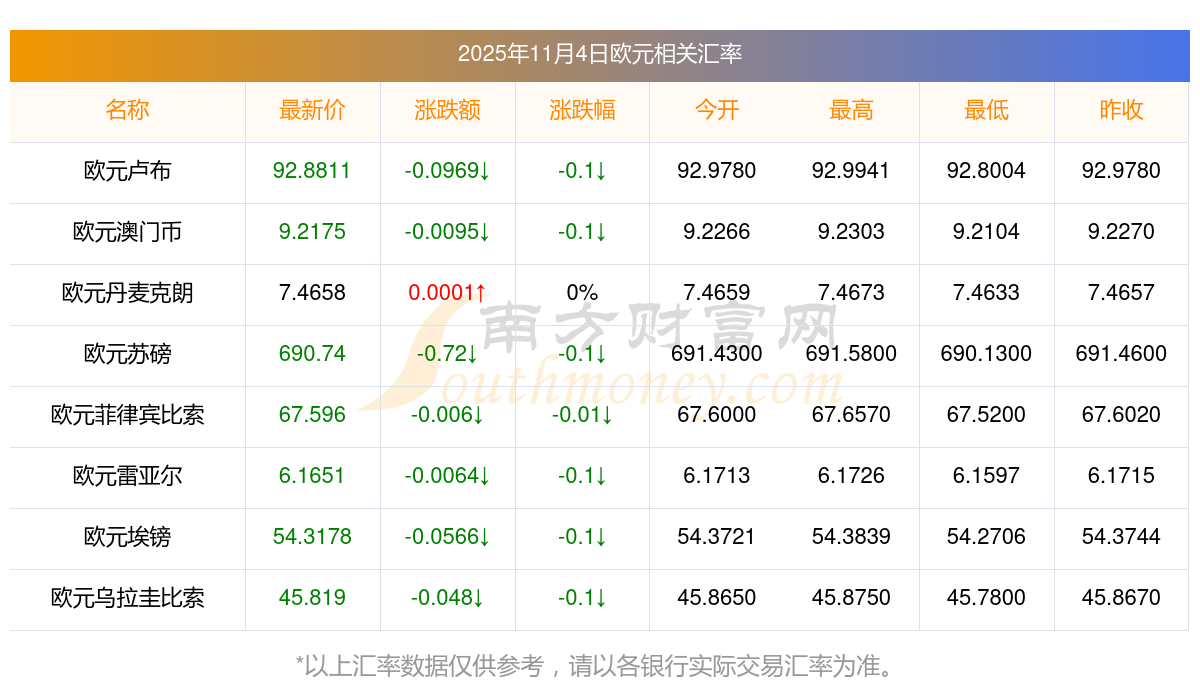 南方財(cái)富網(wǎng)為您提供歐元對(duì)尼日利亞奈拉匯率最新價(jià)格詳情。