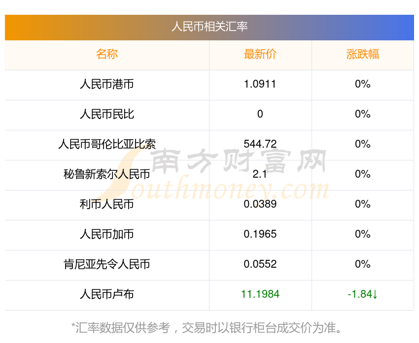 南方財(cái)富網(wǎng)為您提供人民幣對港幣匯率最新價(jià)格詳情。