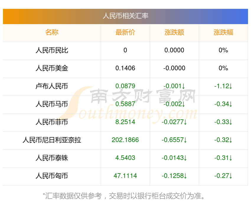 南方財富網為您提供人民幣對盧布匯率最新價格詳情。