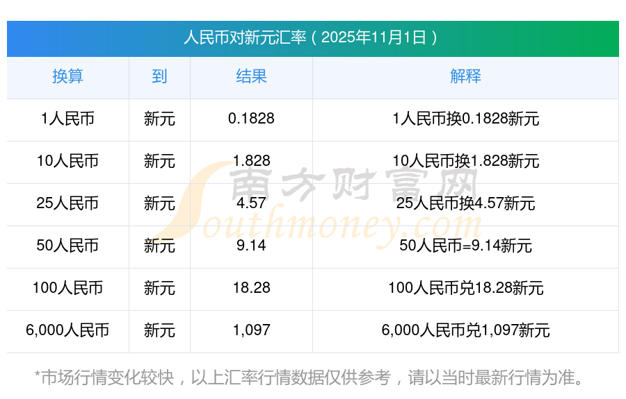 今日匯價(jià)查詢:2025年11月1日40人民幣兌新元匯價(jià)一覽