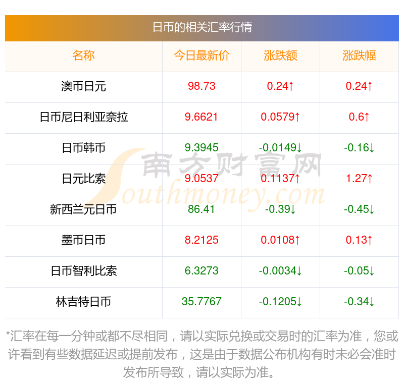 南方財富網(wǎng)為您提供日幣對新加坡幣匯率最新價格詳情。