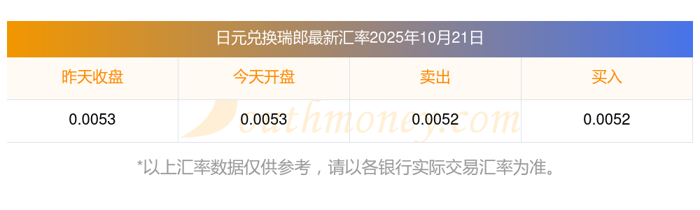 今日10日元瑞郎兌換匯率_實(shí)時(shí)匯率(2025年10月21日)