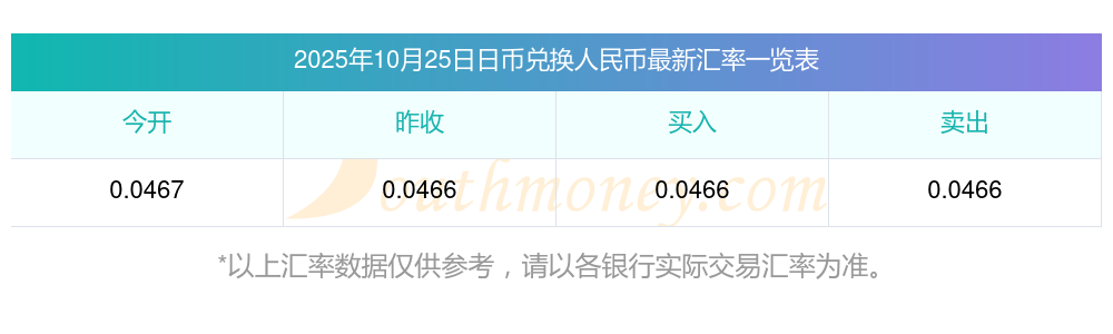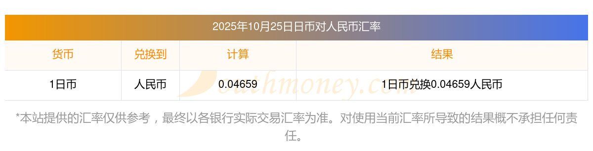今日日幣匯價(jià)表:2025年10月25日9日幣兌人民幣匯價(jià)多少