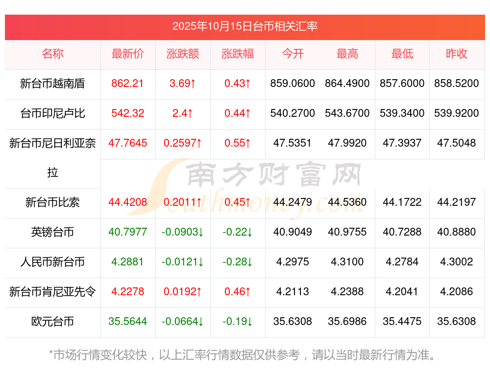 南方財富網(wǎng)為您提供臺幣對印尼盧比匯率最新價格詳情。
