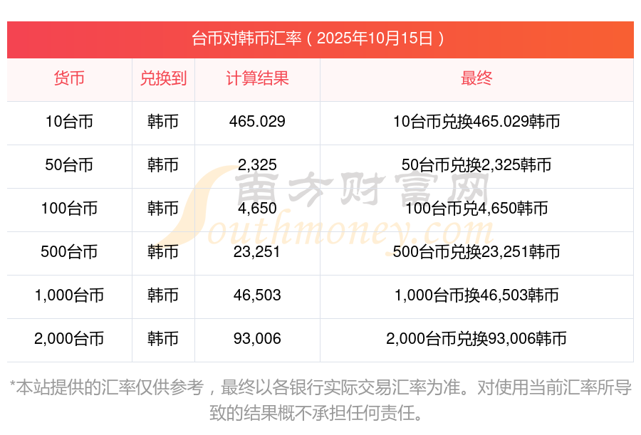 10臺(tái)幣對(duì)韓幣今天匯率是多少?2025年10月15日