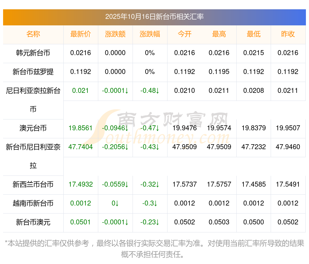 2025年10月16日新臺(tái)幣相關(guān)匯率查詢