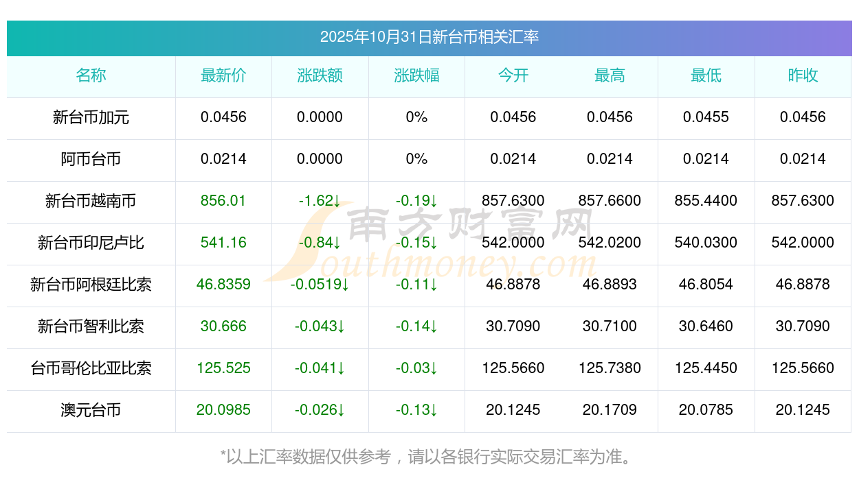 新臺幣值錢嗎,新臺幣與美元換算率多少?10月31日