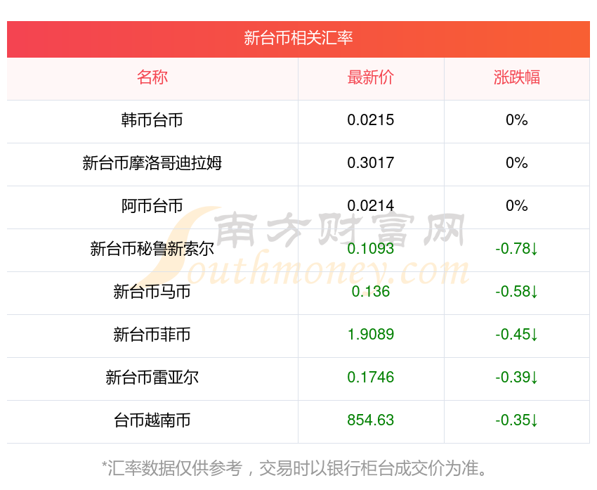 南方財富網(wǎng)為您提供新臺幣對美元匯率最新價格詳情。
