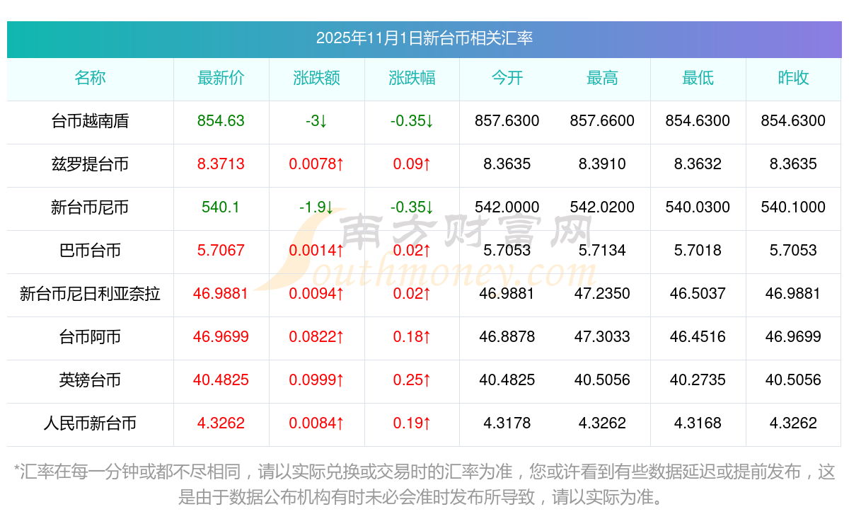2025年11月1日新臺(tái)幣相關(guān)匯率查詢