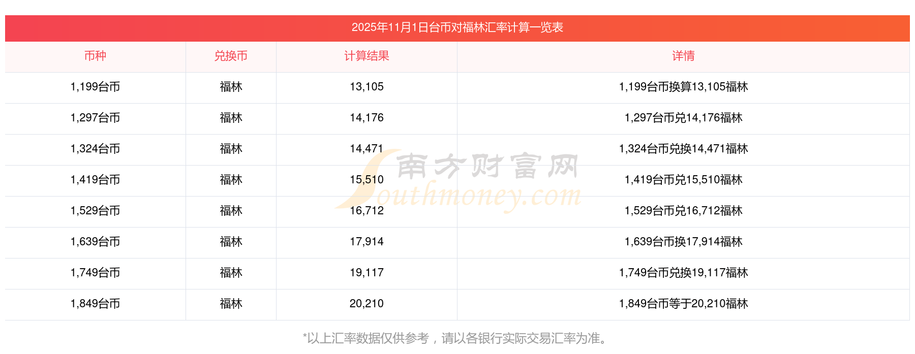 2025年11月1日臺(tái)幣與福林的兌換匯率計(jì)算如下: