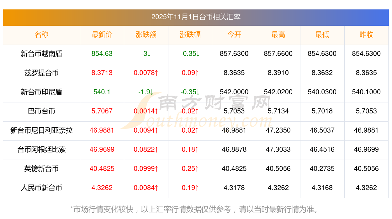 2025年11月1日臺幣相關(guān)匯率查詢