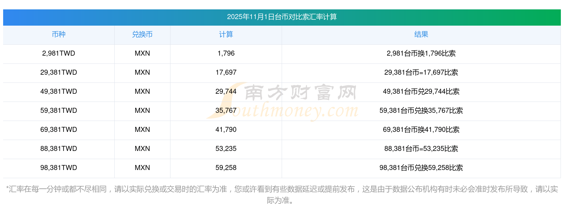 臺(tái)幣對(duì)比索匯率今日匯率查詢表11-1