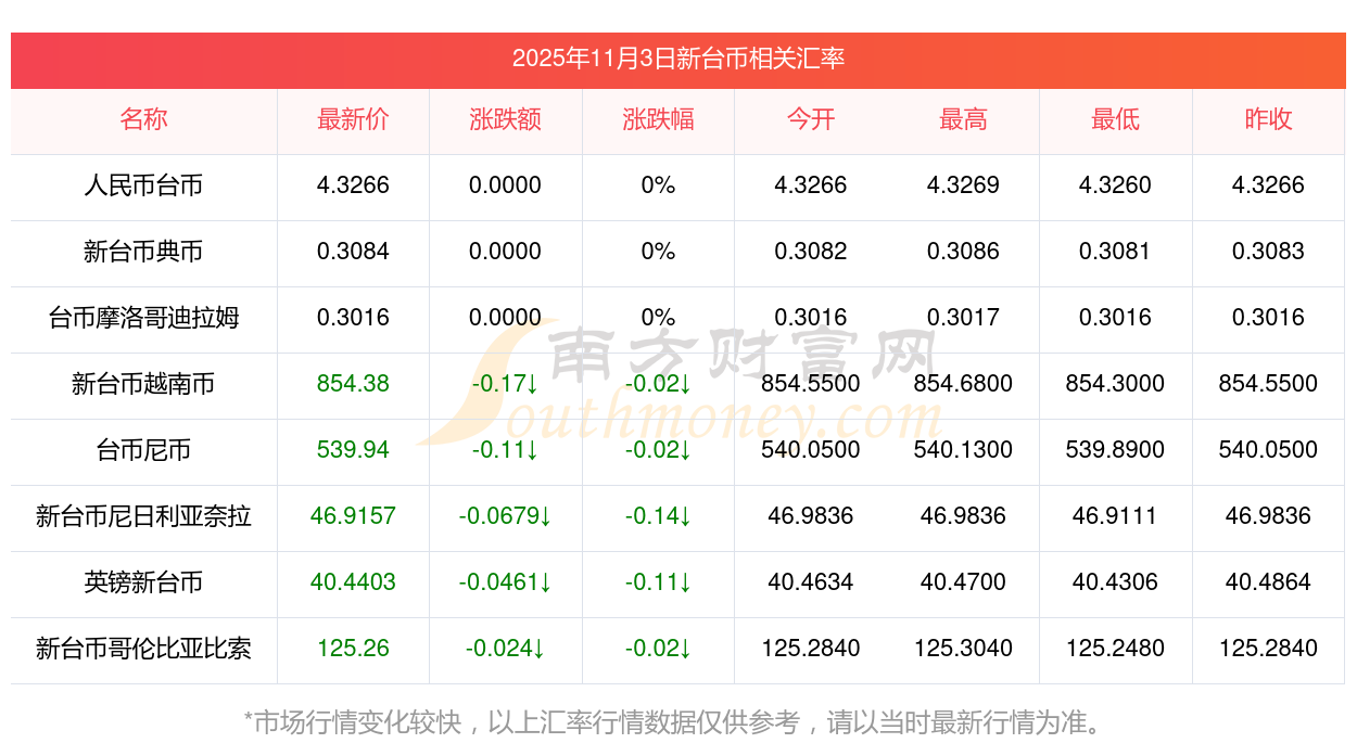2025年11月3日新臺幣相關(guān)匯率查詢
