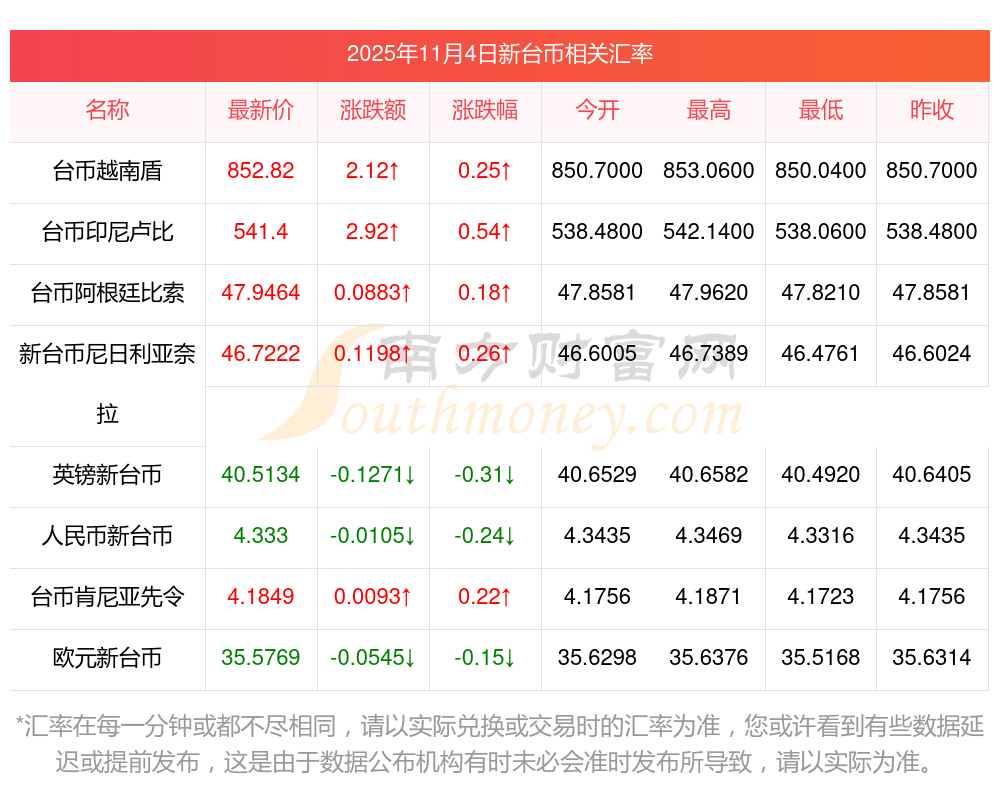 2025年11月4日新臺幣相關(guān)匯率查詢