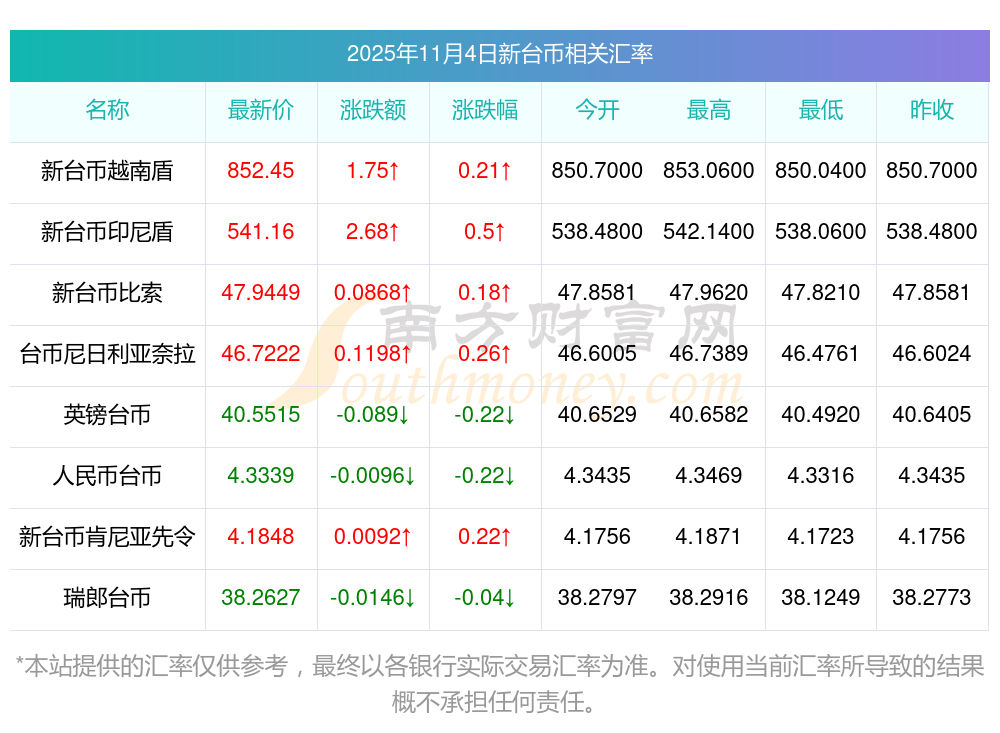 2025年11月4日新臺幣相關(guān)匯率查詢