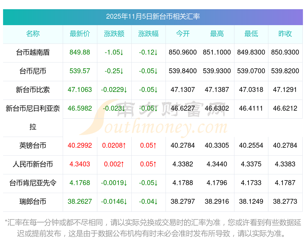 2025年11月5日新臺(tái)幣相關(guān)匯率查詢