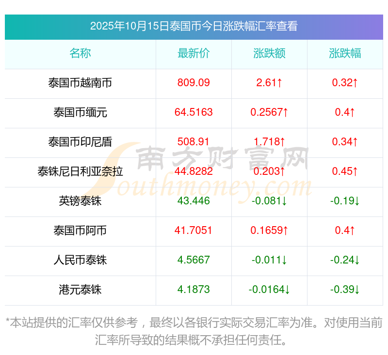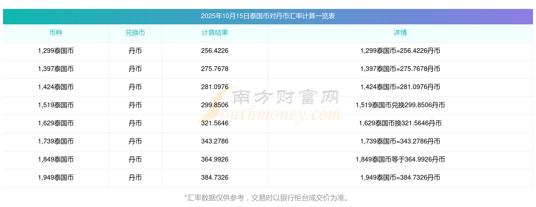 今天泰國(guó)幣匯率多少?泰國(guó)幣與丹幣兌換價(jià)格一覽表2025/10/15