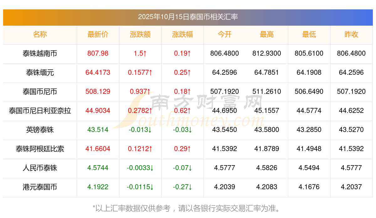 2025年10月15日泰國幣相關(guān)匯率查詢