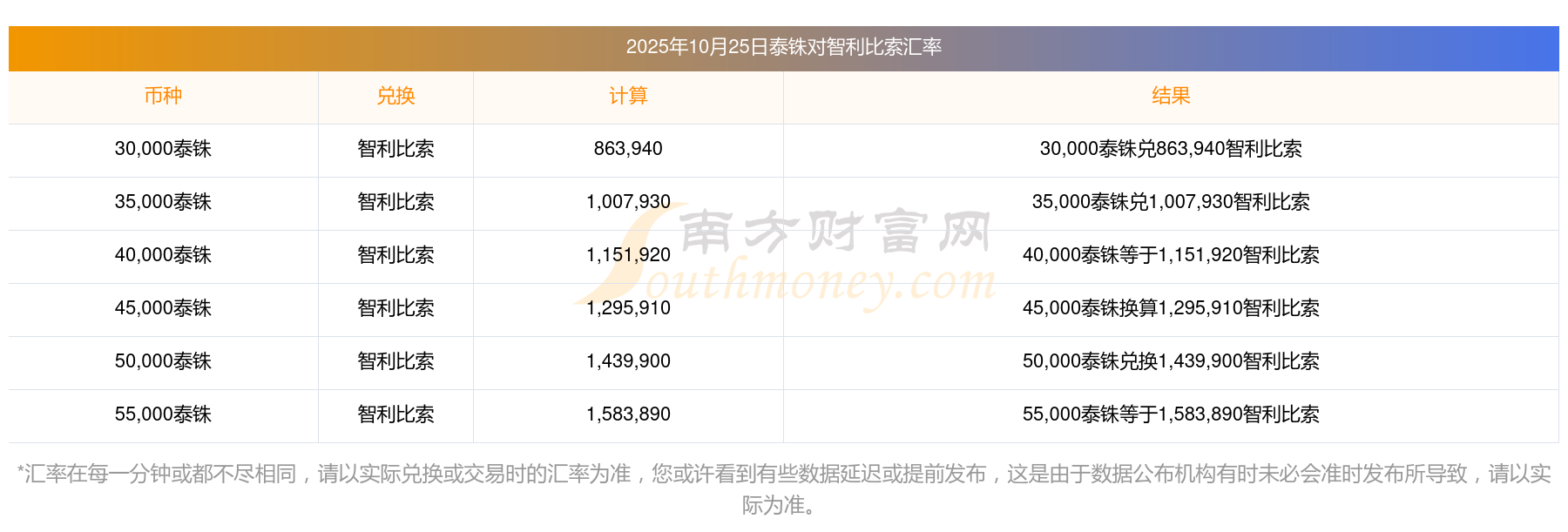 - 泰銖對(duì)智利比索匯率行情一覽表(2025年10月22日)