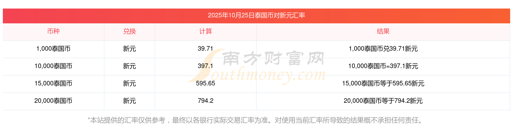 泰國(guó)幣換新元匯率多少2025年10月25日