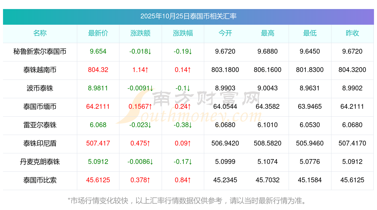 2025年10月25日泰國(guó)幣相關(guān)匯率查詢