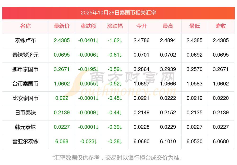 2025年10月26日泰國幣相關(guān)匯率查詢
