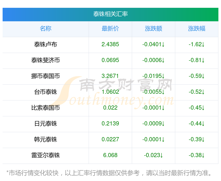 2025年10月26日泰銖相關(guān)匯率查詢