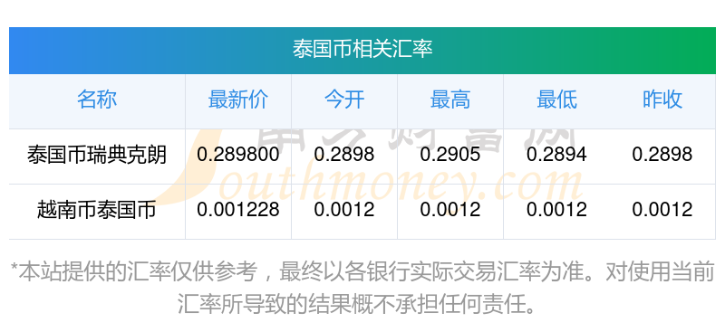 2025年10月29日泰國(guó)幣相關(guān)匯率查詢