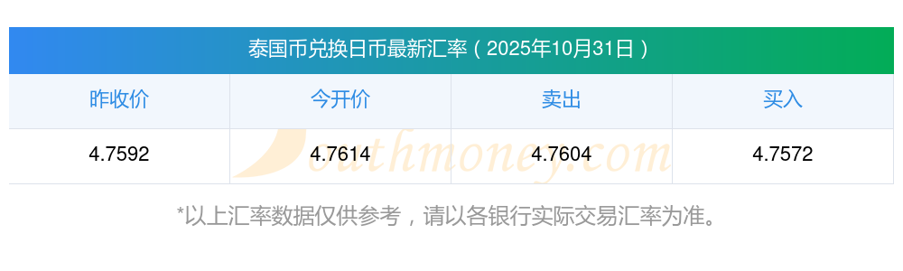 泰銖兌日元匯率記錄10-31 今天泰銖兌日元匯率是多少?